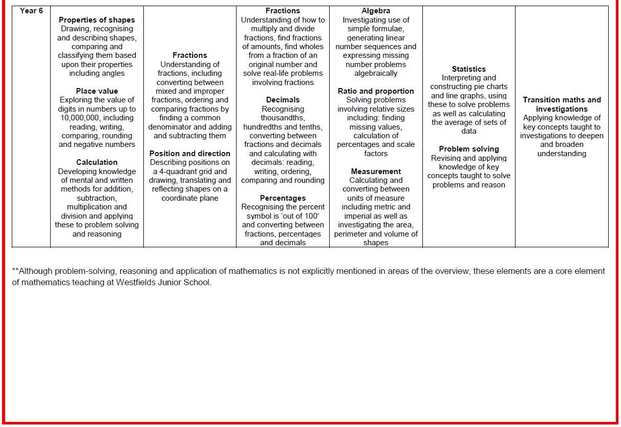 At Westfields Junior School, we deliver a curriculum which addresses these National Curriculum aims of reasoning, fluency and problem solving and ensures that pupils embed mathematical concepts at each stage of their education through a ‘mastery approach’.