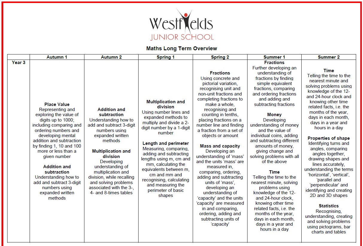 Below you will find the National Curriculum for Maths. The National Curriculum gives us a framework for how we structure or curriculum year on year.