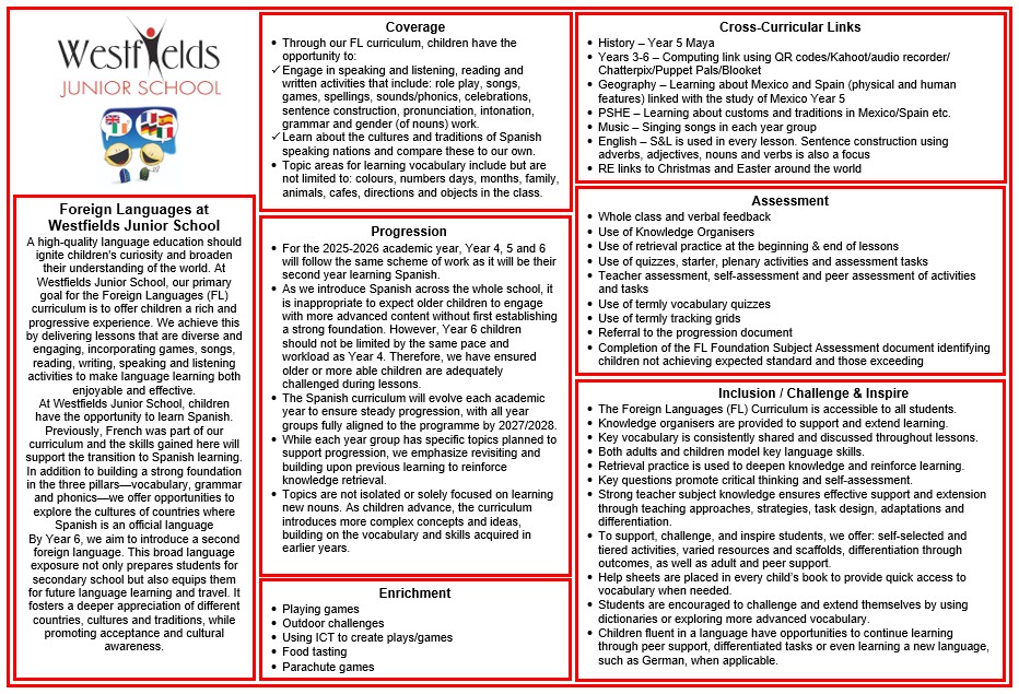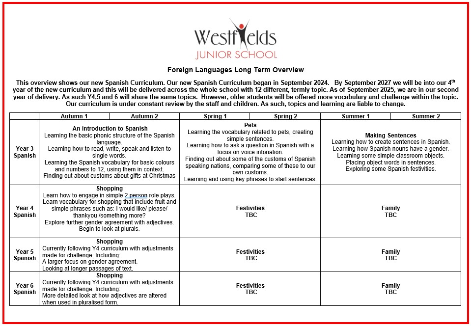 Please view our FL Curriculum Progression of Skills and Knowledge here: