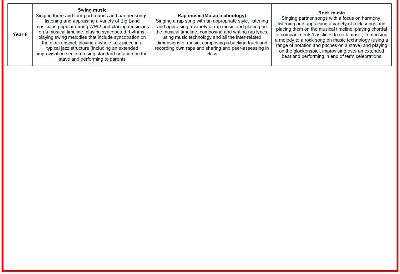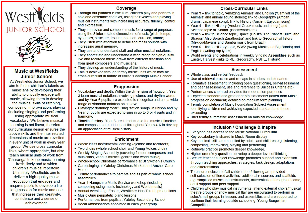 Please view our Music Curriculum Progression of Skills and Knowledge here: