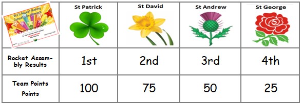 We all enjoyed our annual Rocket Assembly this morning. Following a tough battle of our four school teams, this year, Mrs Crane and the St Patrick Team Captains reigned triumphant with their sequin filled creation!